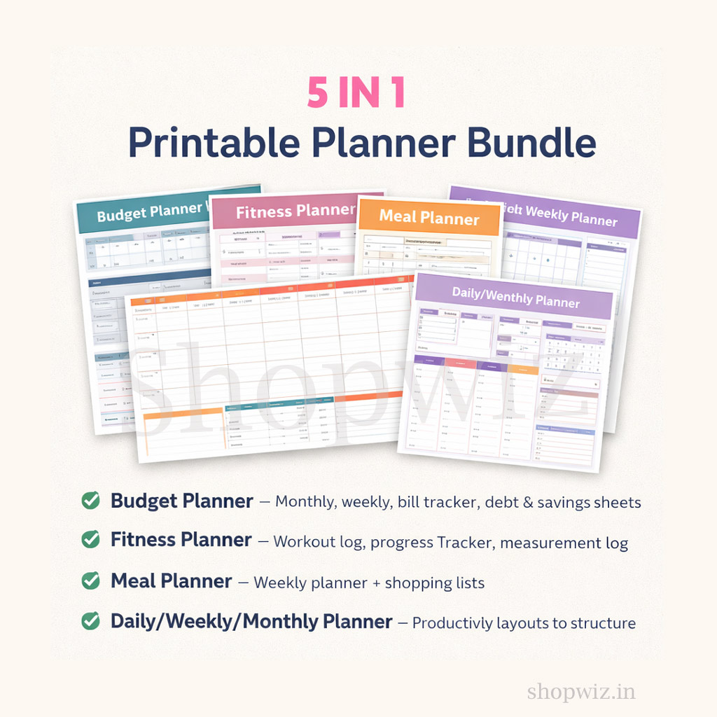 All-in-One Powerhouse – The 5-in-1 Printable Planner Bundle